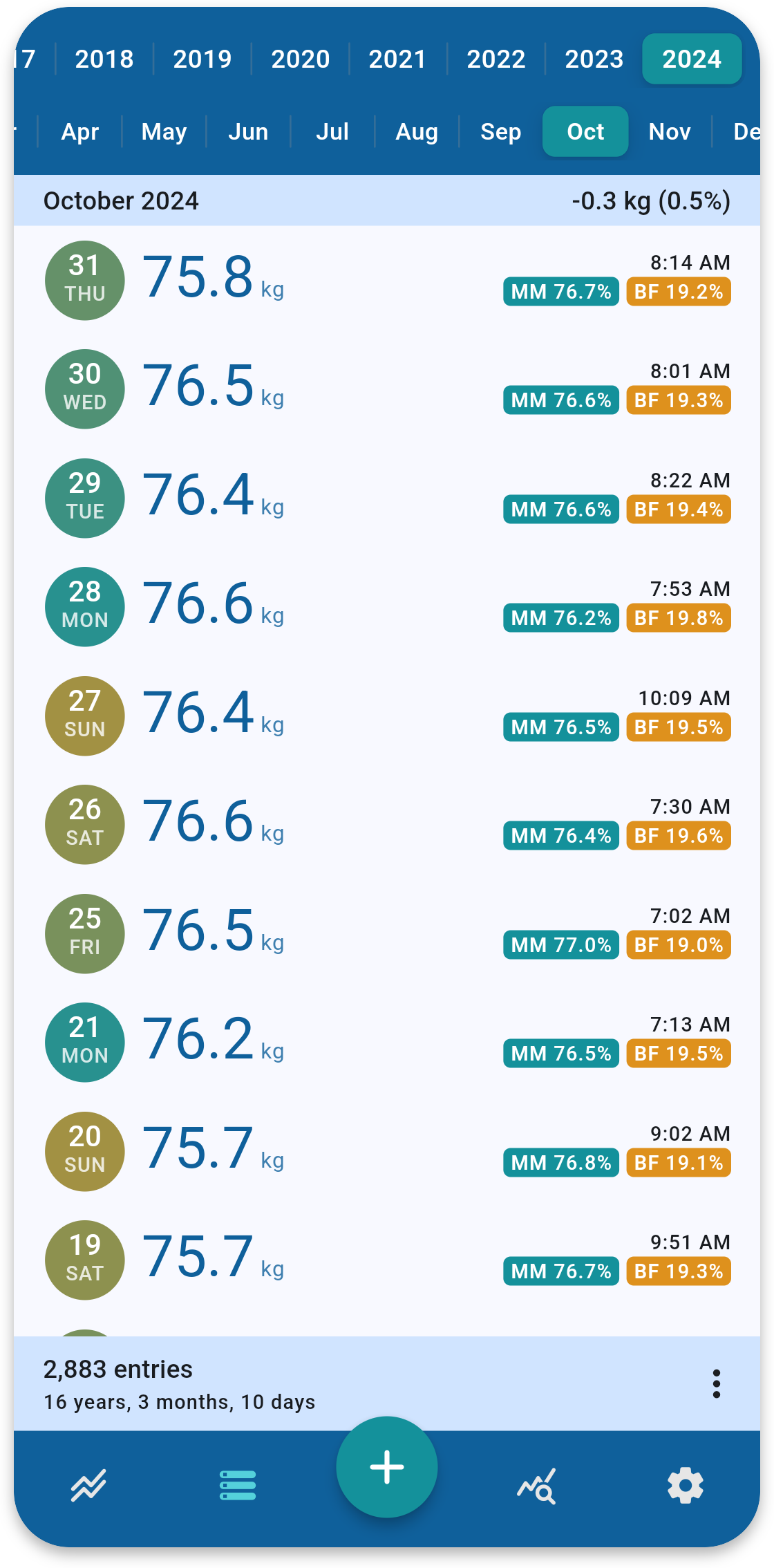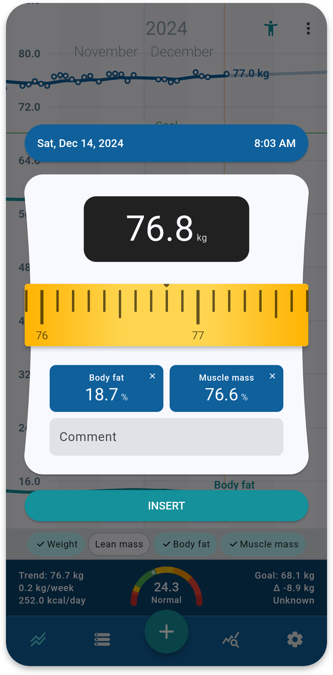 Track your weight, body fat, muscle mass, and other important body metrics.