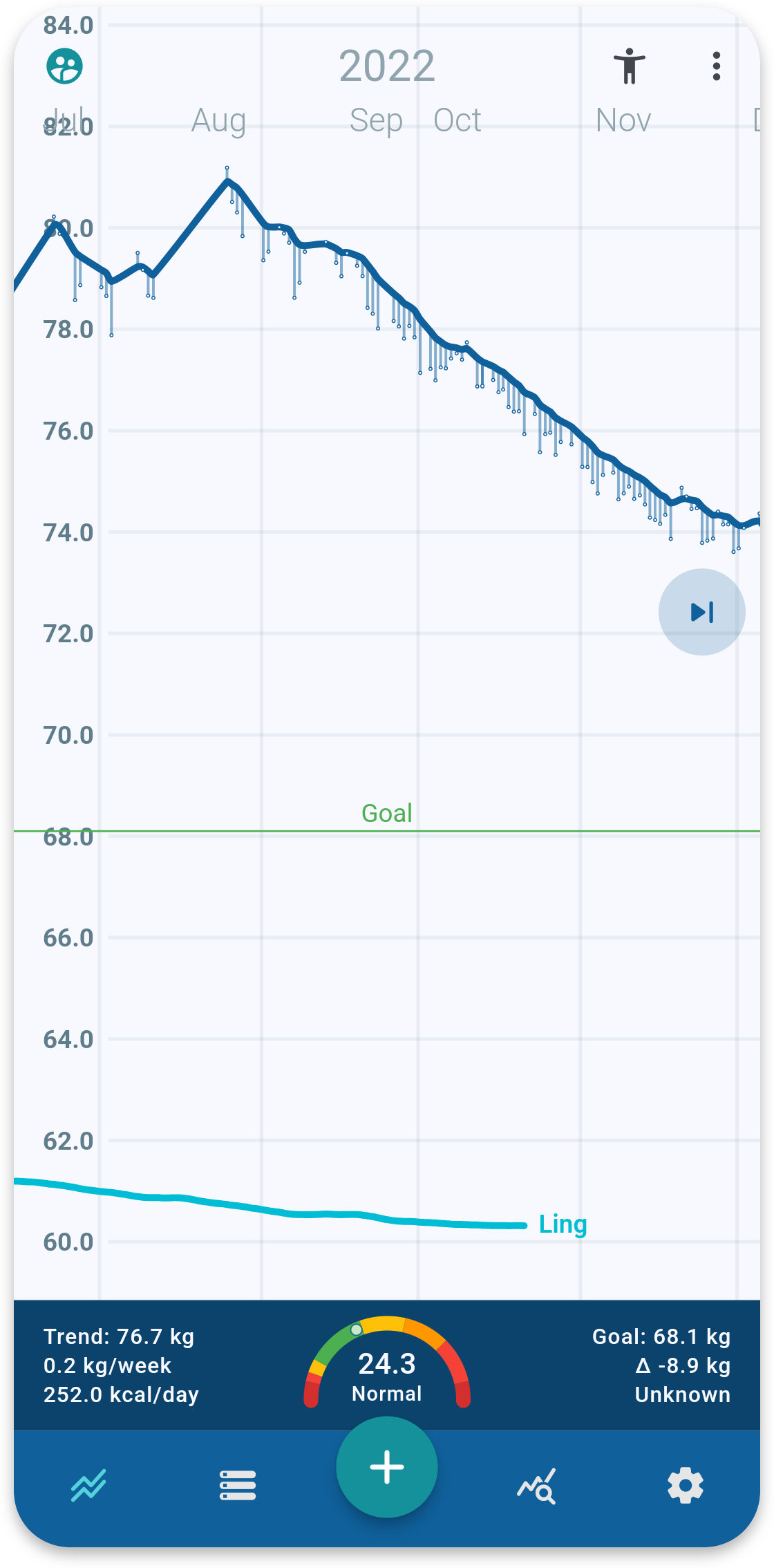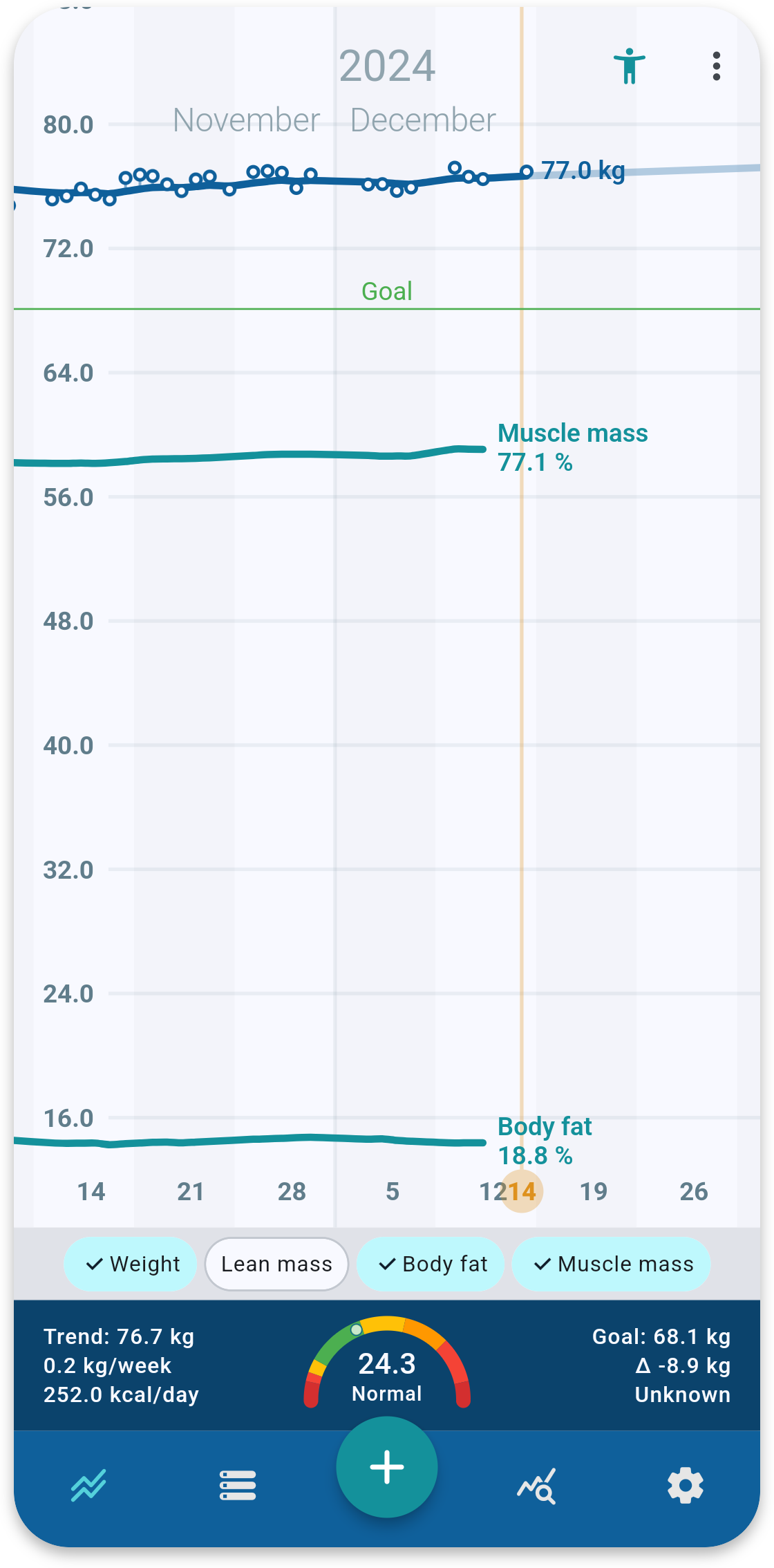 Your weight isn't just one number, Libra shows you how it evolves in relation to your other metrics.